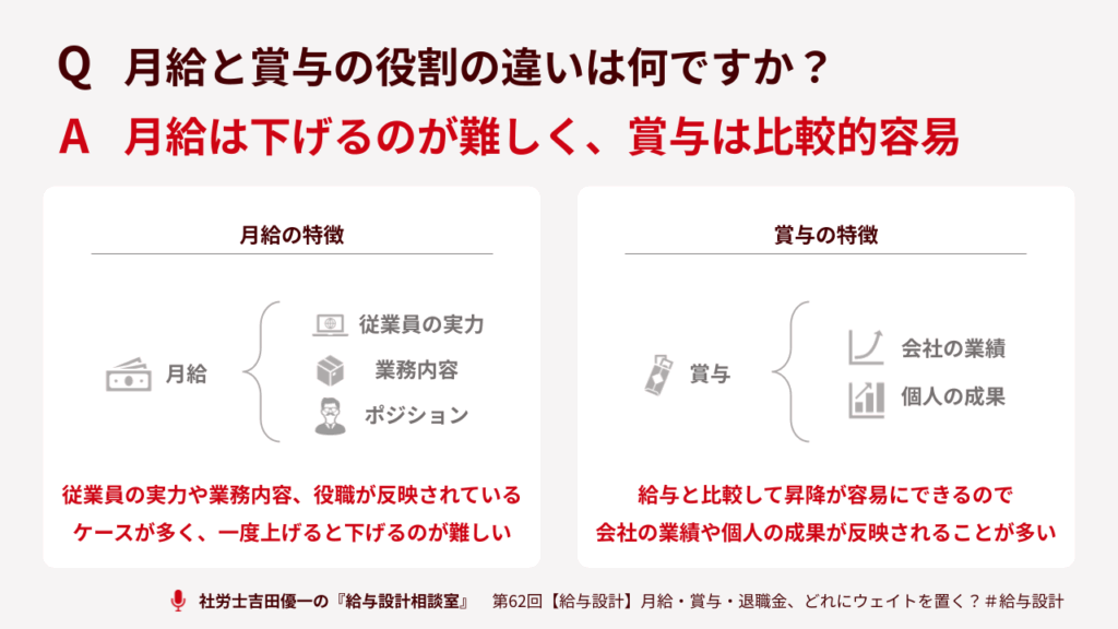 月給・賞与・退職金は、ただ置き換えられるものではありません。それぞれに明確な役割があります。