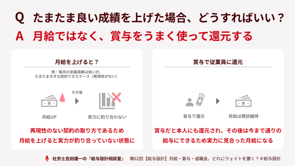 ケースで考える:一度きりの大成功、月給で報いる?賞与で報いる?
