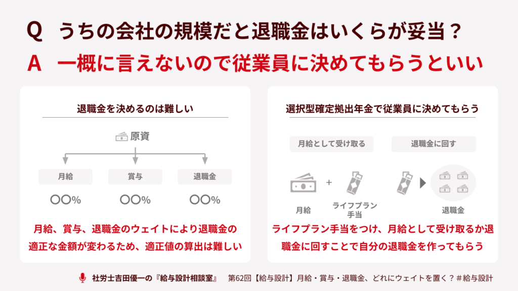 「うちの規模だと、退職金はどのくらい出せばいいんでしょう?」
