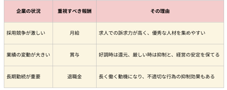 月給・賞与・退職金は、それぞれ違う機能を持つ戦略的なツールです。どれに重点を置くべきかは、事業の特性や経営課題によって変わります。