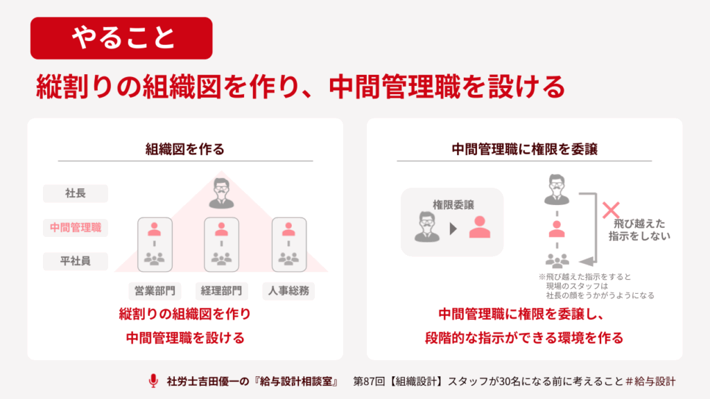 中間管理職の設置と3階層への進化|権限委譲の実践